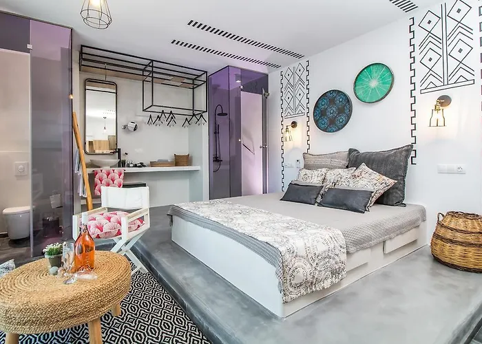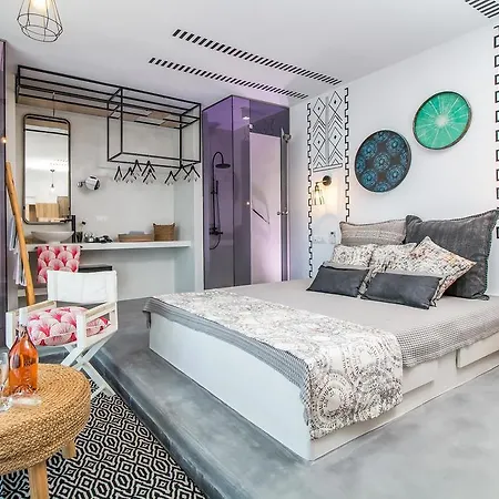30 m^2 apartmán Apartmán Len Art Selected Studios poskytuje výhledy na Anthony Quinn Bay. Tento apartmán má 1 ložnic a 1 koupelen. K tomuto ubytování patří také balkón.